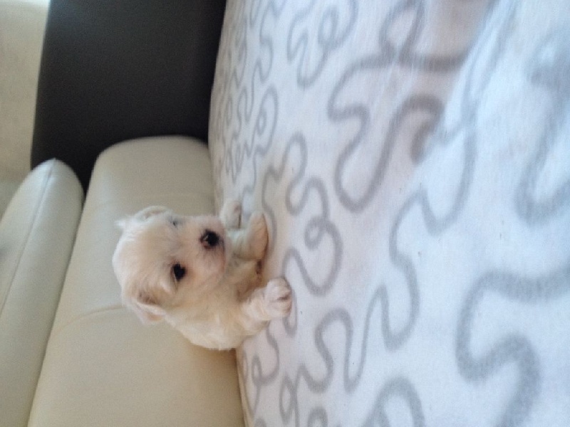 je suis un adorable petit Bichon Maltais, bien éveillé pour mes un mois. Je n'ai ni frère ni s?ur, mais j'ai quand même pour ami un petit chat qui a le même âge que moi. N'hésitez pas à venir me chercher, je ferais un malheur au pied du sapin.
